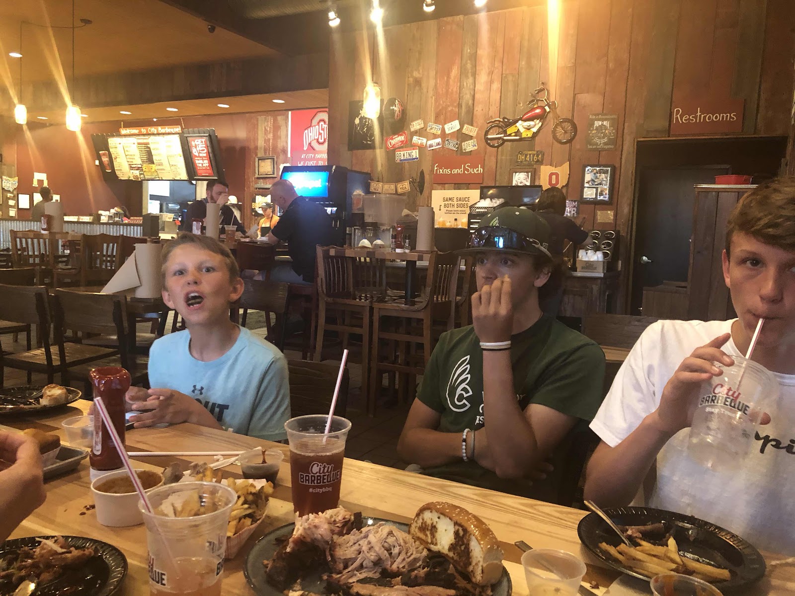 20190529 + Up in the am and dropped J off at HS for the last time ever (providing he gets his drivers license). In to work at the new building to get some things done. Wrapped up at 25 and headed to the big office to finish the day. Finished things off and headed home. D at practice, J&G upstairs on the Xboxes and L&I watched some Game of Thrones while we waited for D to be done with practice. D was on his way home so we loaded up and headed to City BBQ for an end of school year dinner. It was good and we headed home and all watched Marwen together, cute movie. Headed to bed in good time.
