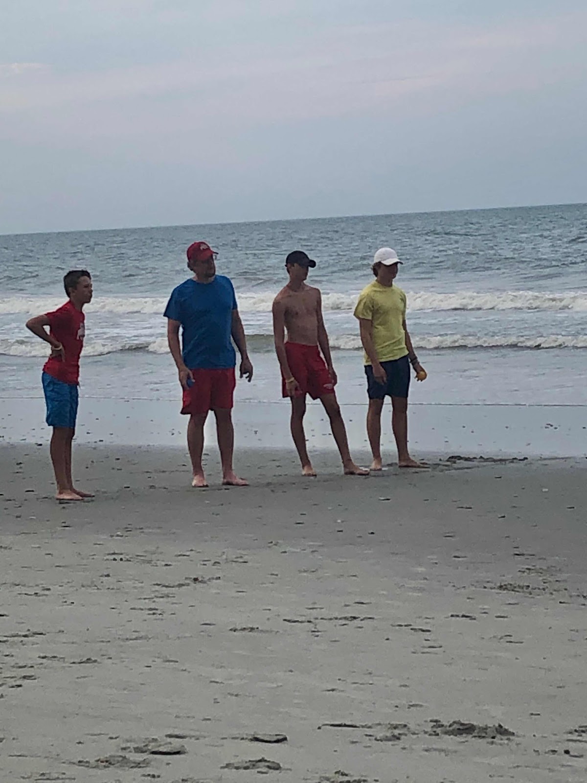 20200728 + Up a bit earlier today and got myself around and headed to the beach where L had gotten us on of the umbrellas put up by the lifeguards and it was lovely. We hung out in the shade chit chatting and relaxing watching the surf and the people. We hung out on the beach and the boys eventually showed up Bringing us sandwiches and beer. We hung out a bit longer on the beach and then headed in to the room. After a short break JG Larson and I headed across the King’s Highway to play 36 holes of putt putt at Captain Hooks. All of us got 2 hole-in-ones over the 2 courses! G&I tied for the first round and G ran away with the win for the 2nd round. We stopped at the store on the way back to the room and got more pop and margarita mix. L had dinner ready for us and we ate and headed down to the beach for a round of bocci ball where I won again! Back to the room to finish off the night.