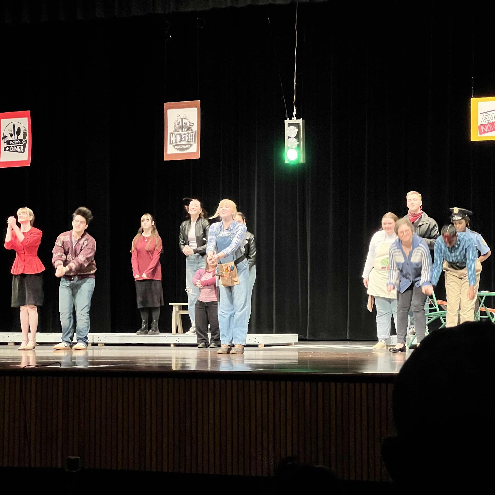 20220218 + Up in the am and L at school, J&G have a day off of school for whatever made up reason. I got to the desk and had a pretty good day, got some stuff done. After work L&I headed to the high school for their Dinner Theater. We sat with Karen Pettit and Penn Mallonn for the dinner and then headed in for the play, ‘Stoplight’. It was a strange little play, but nice enough. Home and G had gotten picked up and spent the night at a buddy’s and J at band practice. We watched the Olympics and played with Hazel. J got home late.
