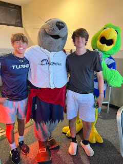 20220803 - Up in the am and headed to the Worthington office. CB came in for just a min, he’s sick. I was at the desk all day. L texted in the afternoon, after she took G to school to pick up his laptop get his pics taken and walk his classes, that Hazel was attacked by the dog from 3 doors down while they were on a walk… ugh! I finished my day and headed home. J was home so chatted with him a bit. Hung out on the patio waiting for our ride to the Clippers game. G&I are going with Chad and Taylor Neer, a kid he’s played baseball with for years. We sat tin the box and had food and drink and enjoyed the game. It went extra innings and we watched a storm roll south of the city as the Clippers pulled off a walk off win! Home and G drove to Andrews to spend the night, I chatted with Terrill a bit and then headed home and to bed.