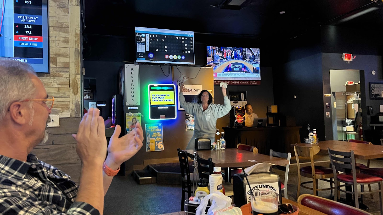 20240417 - Up and J home for the morning to get his passport submitted. I had to wake him up so he didn't miss the window at USPS. On the PC on calls and working the P&L. Raining this morning. I forgot Hazel outside and she got soaked. I was at the desk most of the day. Took a break to take Hazel on a walk. Headed to the baseball field and got things set up in the concession stand and then headed to the press box. Got everything up, got the rosters 7 min before game start… and got things rolling. 1 inning in and lightning struck and the skies opened up with rain and hail. Game got suspended to another day and we headed for the car and got SOAKED! I dropped L off at home and then headed to Signature’s for bingo with Tom. D stopped by for a beer and the Ferguson’s showed up and we had a good time. Home, chatted with L a bit and then went to bed. Woke up at 2 and was awake until 4…