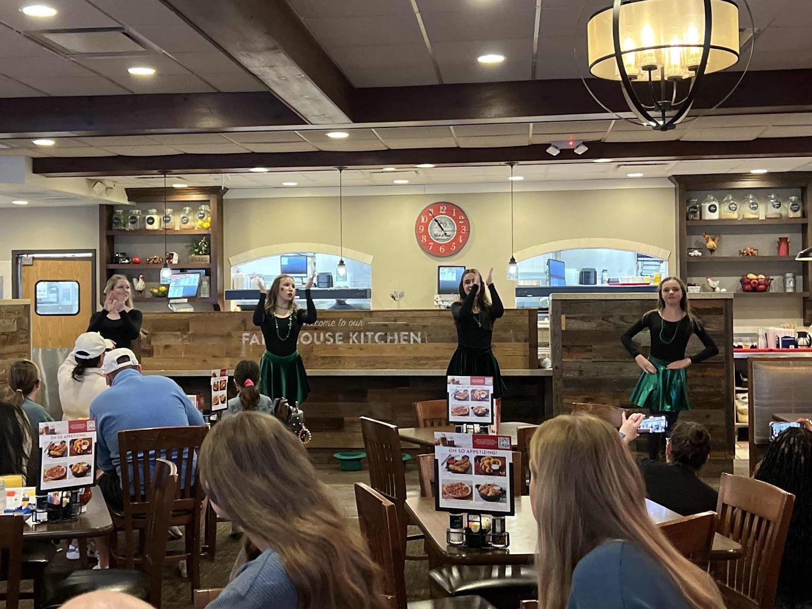 20250316 - Up early and L&I went to church for her school appreciation service. It was nice to see all the familiar faces and catch up a bit. Afterwards we went to Bob Evans for brunch and some cloggers showed up for a little show. We then headed home and relaxed a bit and Ms. Crews called, Doc had fallen and she couldn't get him up, so I ran over and se got him situated. In the evening L&I ran up to Gatsby's to meet Bill and Tiff for a couple drinks. They had an awesome live band and it was super fun.
